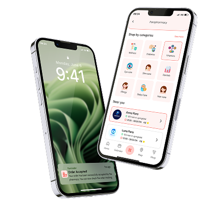 - Patient application: notifications, medication reminders, renewals, and NFC/in-app payments.